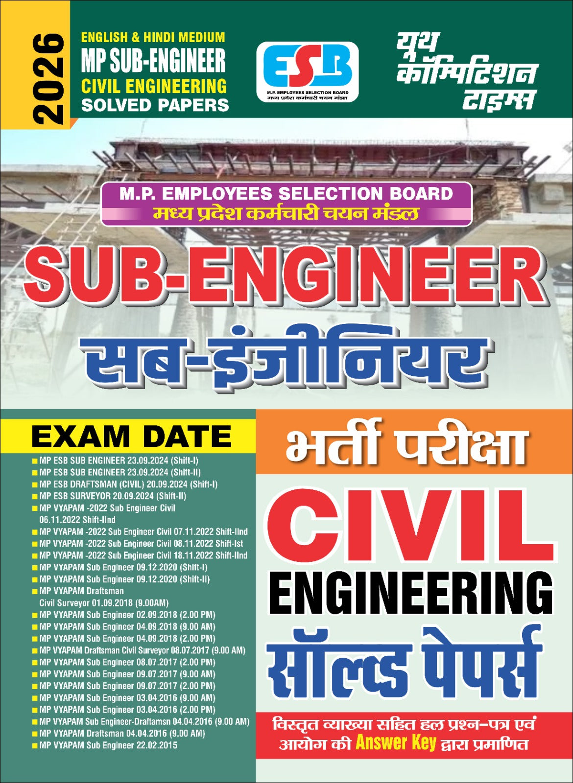 MP Sub-Engineer Civil Engineering exam. Published by Youth Competition Times, it is designed for candidates appearing for exams conducted by the M.P. Employees Selection Board (MPESB), formerly known as VYAPAM.