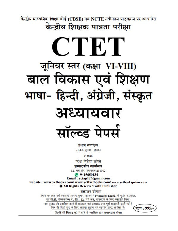 CTET CDP & Language Junior Level (Class VI-VIII) Chapterwise Solved Papers (12180 Objective Question) Hindi Medium Volume 2