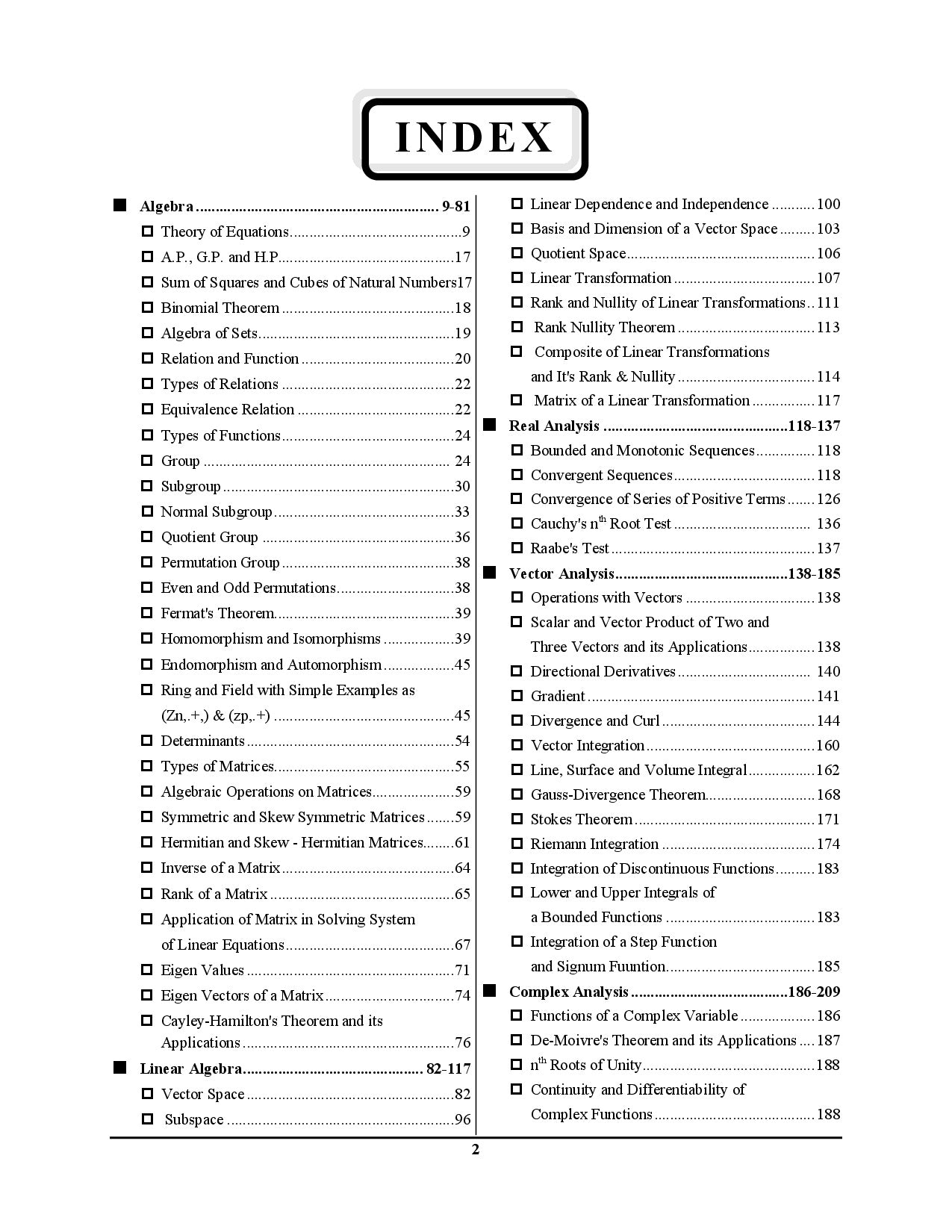 Coverage of core Mathematics topics (Algebra, Real Analysis, Calculus, Differential Equations, Linear Algebra, etc.)