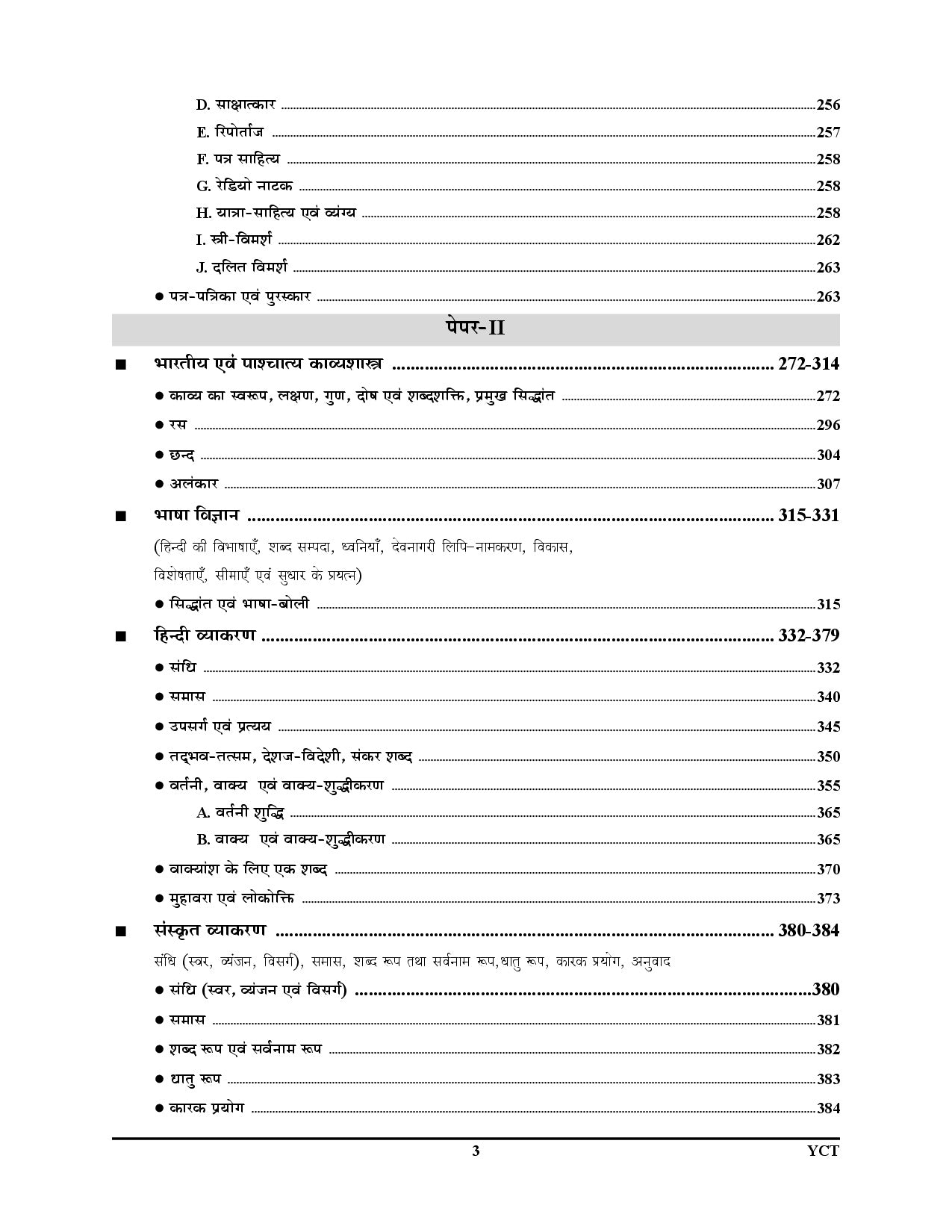 अध्यायवार विभाजन (काव्य, गद्य, व्याकरण, भाषा-विज्ञान, साहित्य इतिहास आदि)