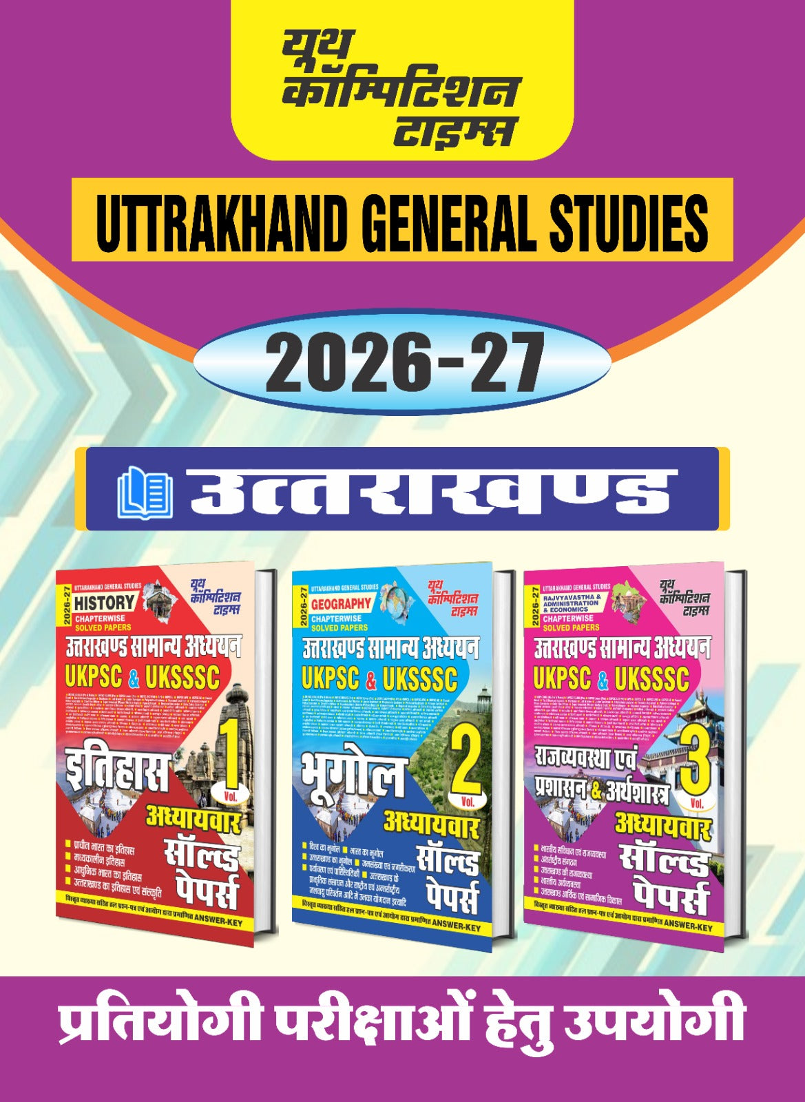 This series of Uttarakhand General Studies (2026-27) books by Youth Competition Times (YCT) is a comprehensive preparation resource for candidates appearing for UKPSC and UKSSSC examinations. The collection is divided into three specialized volumes, providing an in-depth, chapter-wise analysis of solved papers to ensure systematic learning.