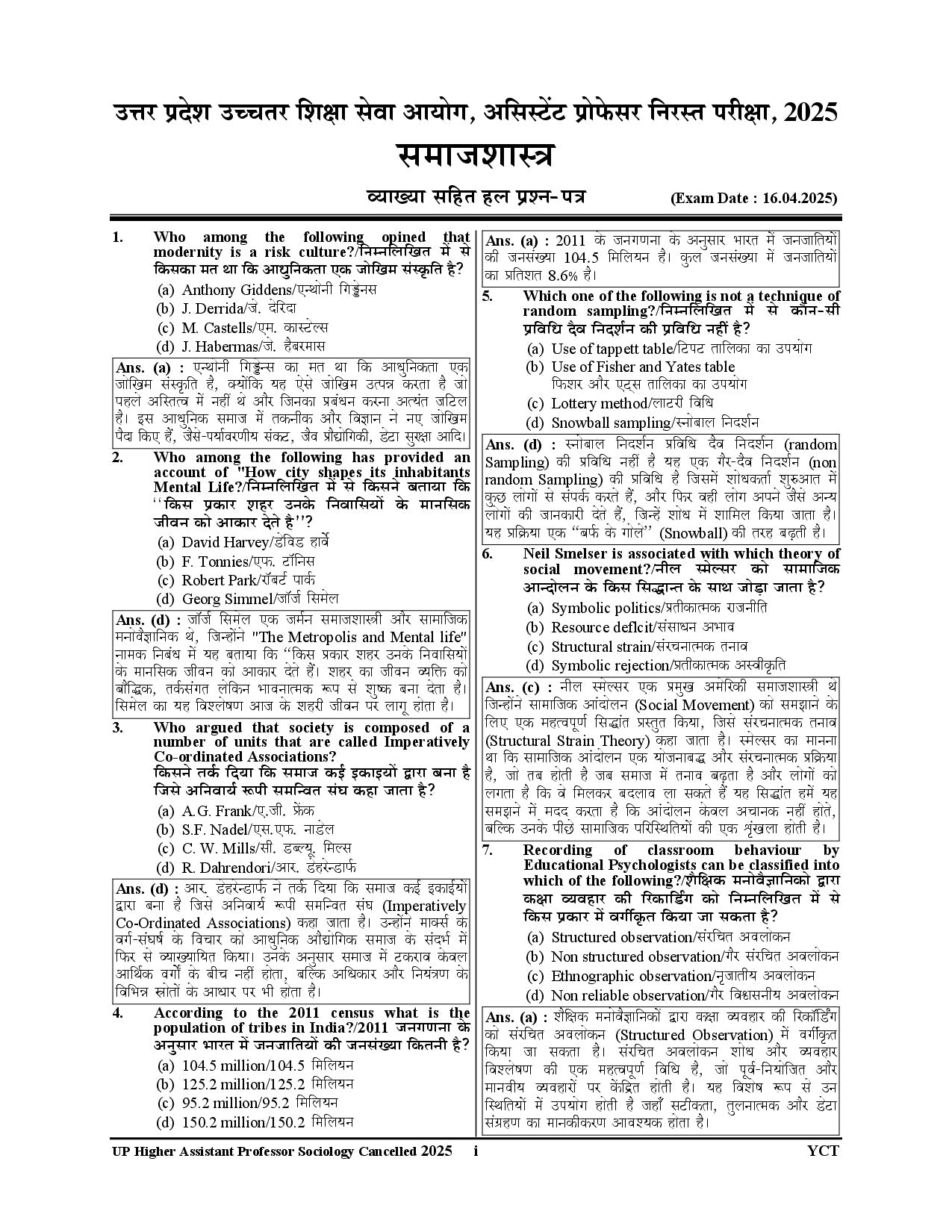 ✔️ Subject Focus: Concentrates on core topics in Sociology such as sociological theory, research methods, social institutions, social change, classical thinkers, Indian society, and other areas commonly tested in Assistant Professor exams.