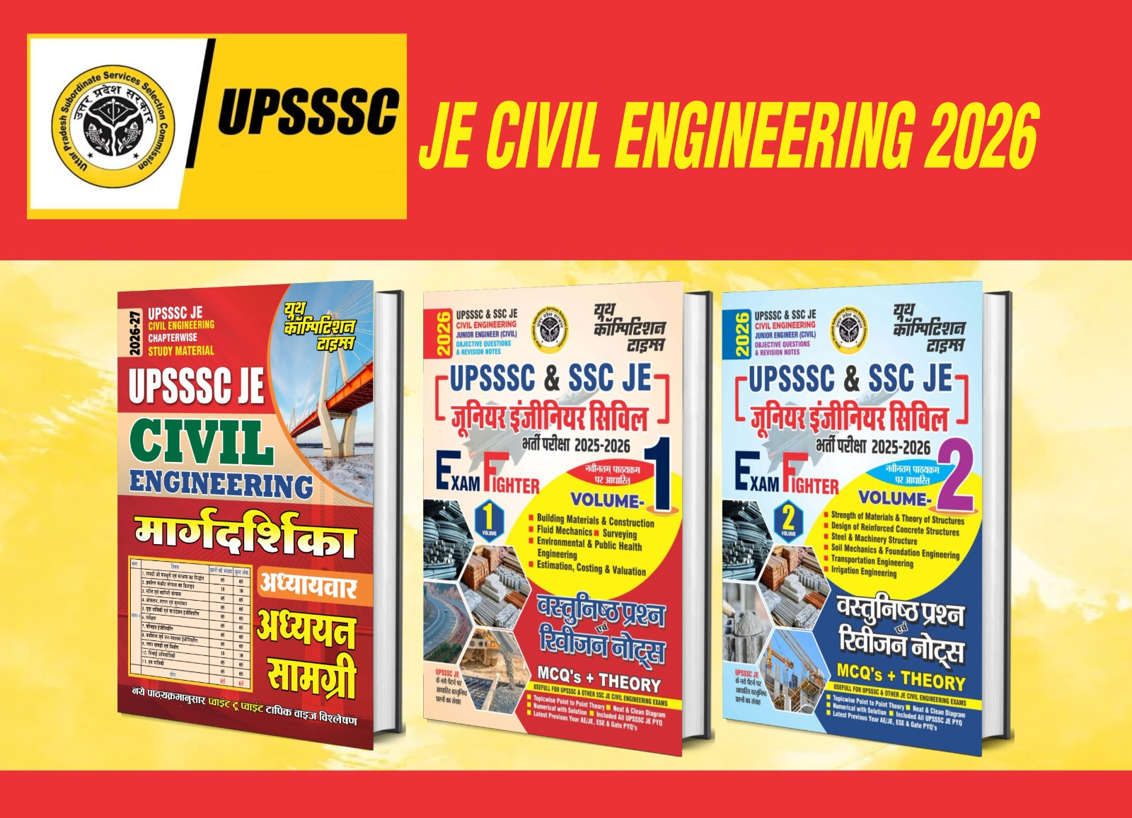 UPSSSC Junior Engineer (Civil) 2026 exam preparation books, published by Youth Competition Times.