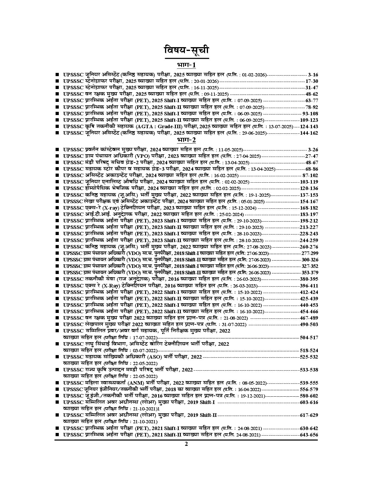 यह एक प्रश्न बैंक (Question Bank) प्रकार की पुस्तक है, जो UPSSSC की विभिन्न परीक्षाओं की तैयारी के लिए बनाई गई है।