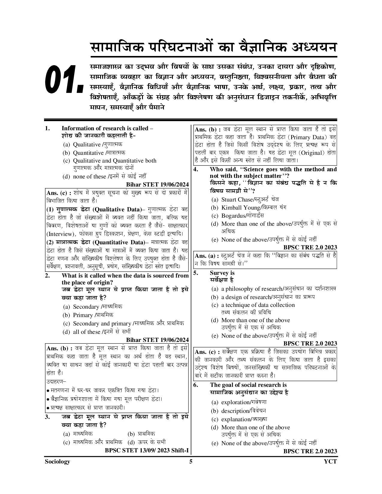 • 3000+ previous year solved questions: A large collection of actual past exam questions from earlier BPSC TRE cycles (TRE 1.0, 2.0, 3.0, etc.), all with detailed solutions — helping you understand trends and frequently tested concepts (similar formats exist in related Sociology practice books).