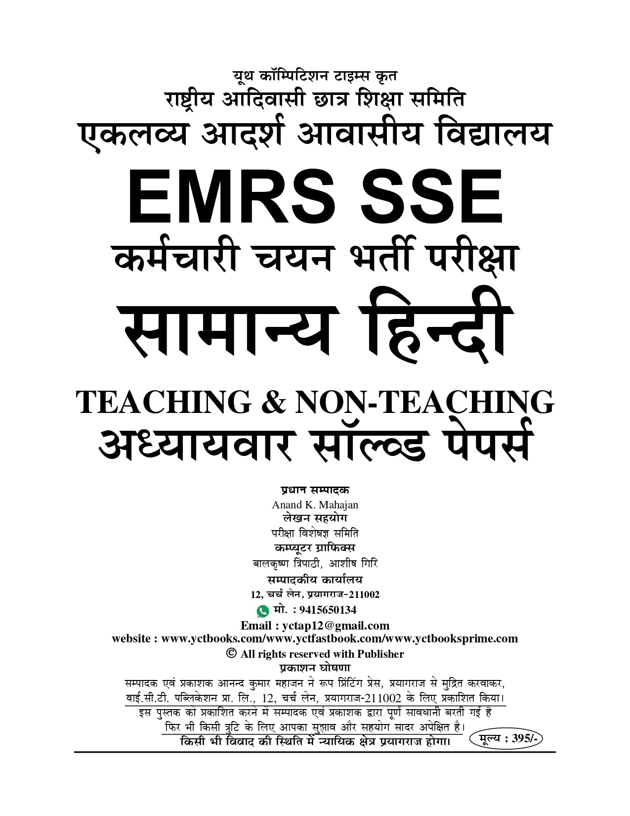This is Volume 1 of EMRS Special General Hindi Chapterwise Solved Papers for the EMRS SSE (Eklavya Model Residential Schools Staff Selection Exam).