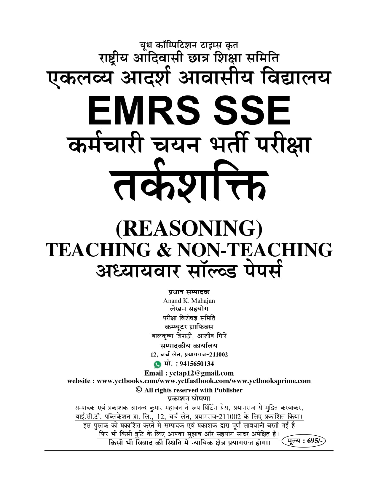 This book, published by Youth Competition Times (यूथ कॉम्पटीशन टाइम्स), is an EMRS Special guide focused on Reasoning (तर्कशक्ति) for various government recruitment exams.