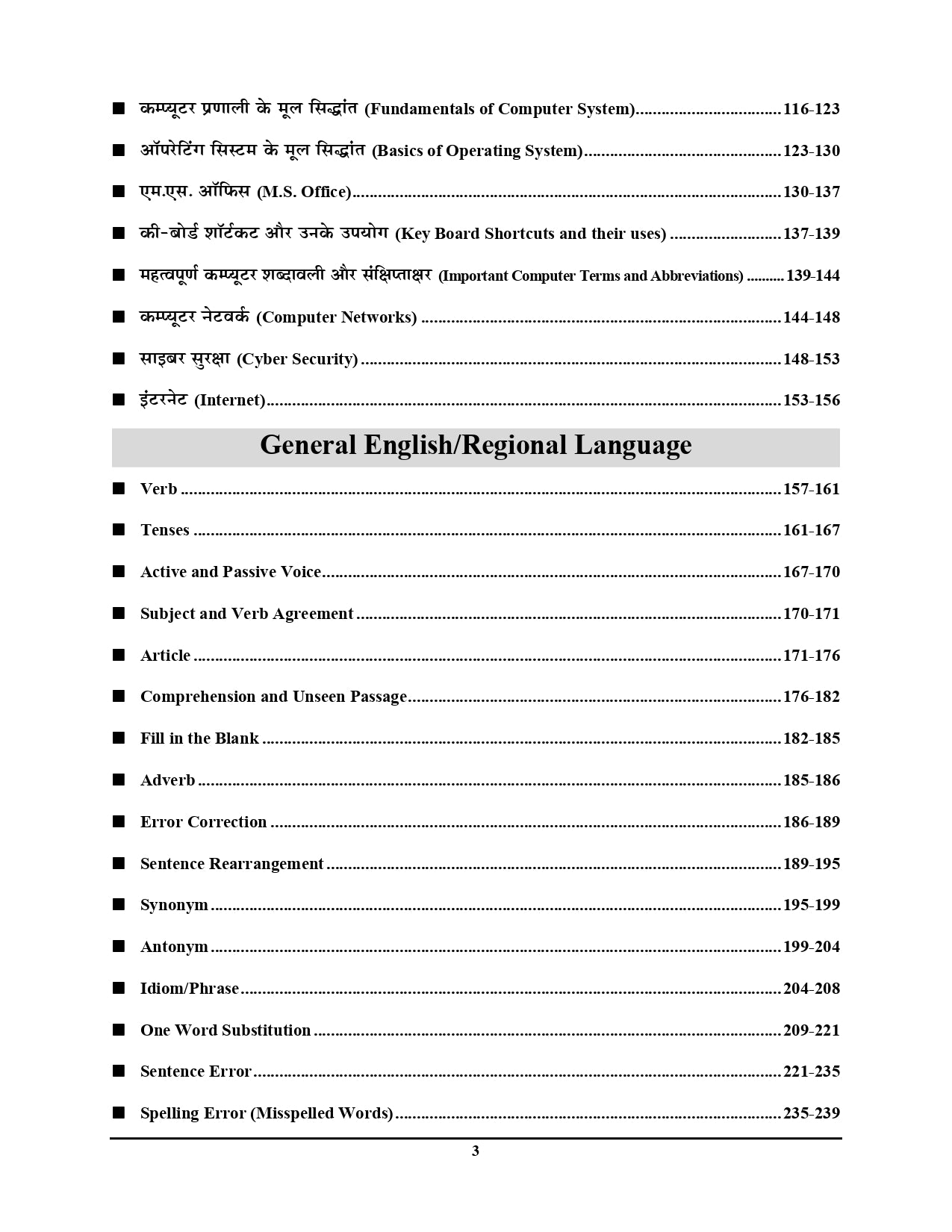 The book is structured as a Tier-I Examination Refresher (परीक्षा रिफ्रेशर) and is composed strictly according to the Latest Syllabus (नवीनतम पाठ्यक्रम के अनुसार संयोजित), covering all core subjects for the preliminary exam: General Awareness, Reasoning Ability, Knowledge of ICT, Quantitative Aptitude, Language Competency (General Hindi, General English, and Regional Language). It serves as an essential, consolidated resource for last-minute revision and comprehensive review.
