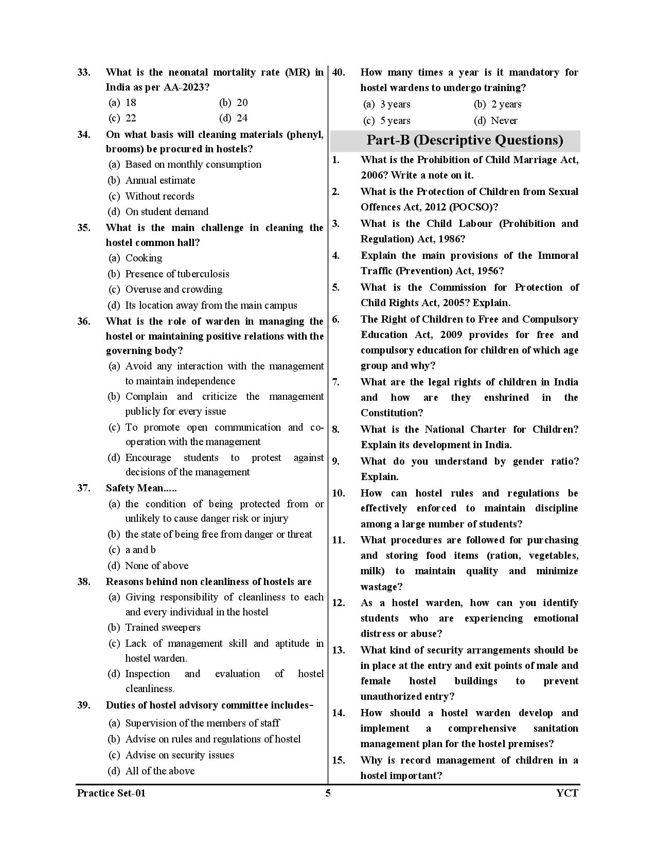 Hostel Administration & Child Psychology
