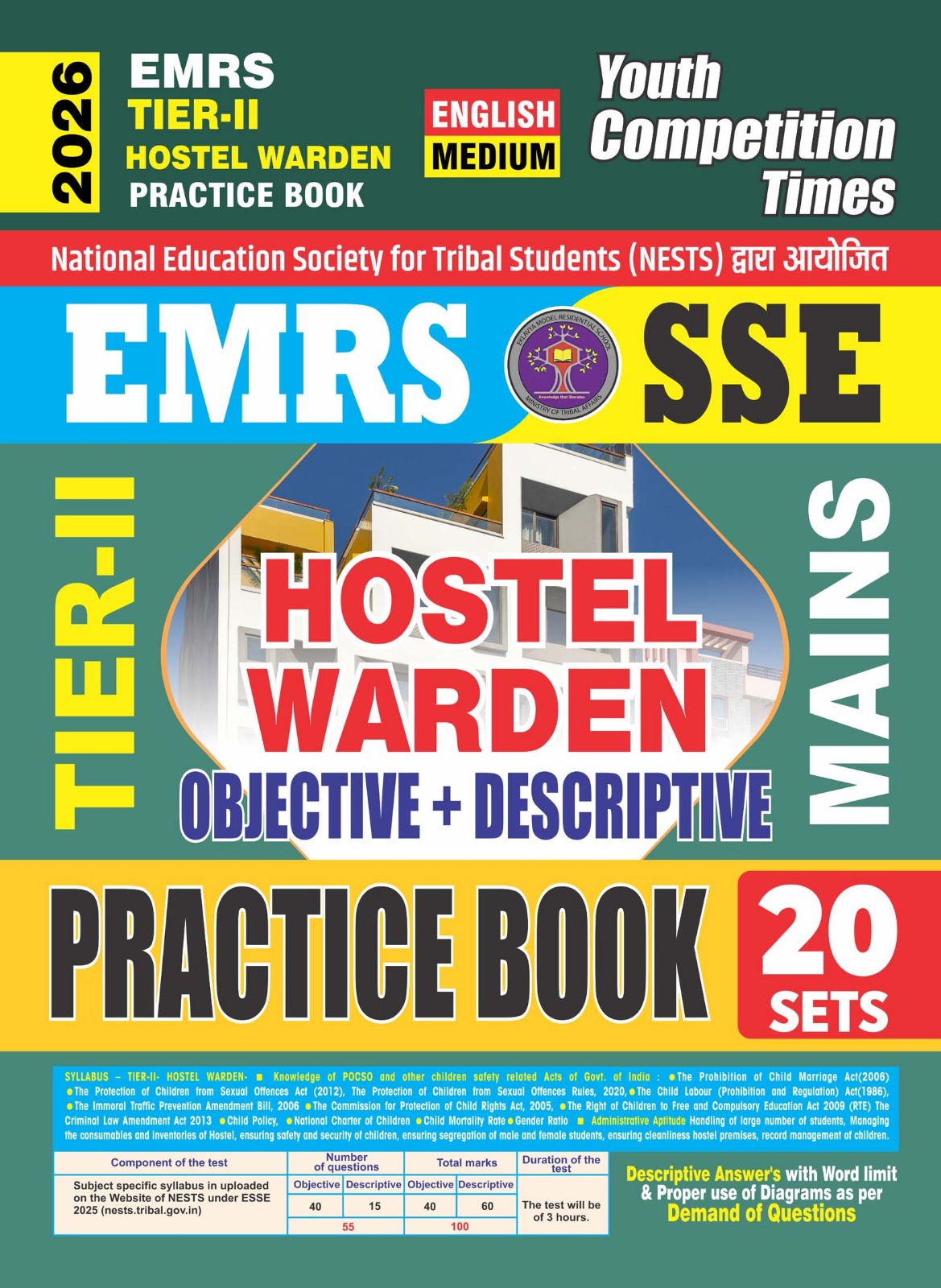 English Medium β EMRS TIER-II Hostel Warden (Mains) Objective + Descriptive Practice Book (20 Sets) β 2026