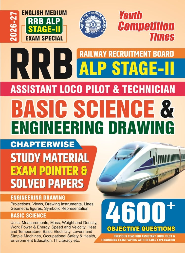 English Medium_RRB ALP Stage-II Exam Special Basic Science & Engineering Drawing Chapterwise Study Material, Exam Pointer & Solved Papers (4600+ O.Q.) – 2026-27 एक विशेष रूप से तैयार की गई पुस्तक है, जो Railway Recruitment Board (RRB) द्वारा आयोजित ALP (Assistant Loco Pilot) Stage-II परीक्षा के लिए उपयोगी है।