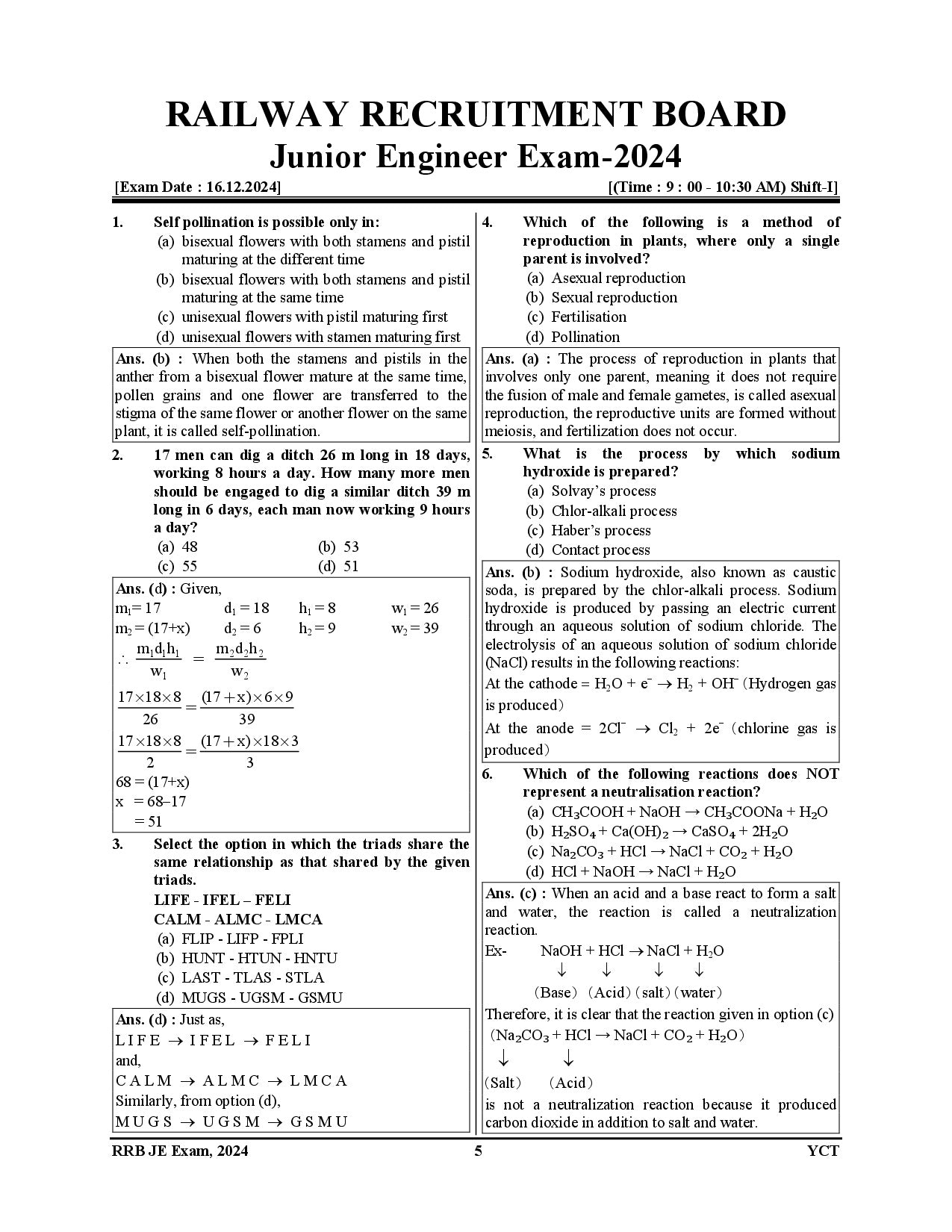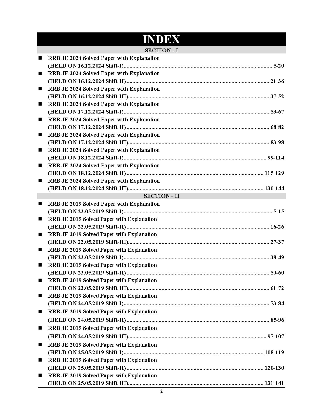 Each solved paper includes accurate answers with clear explanations, helping candidates understand concepts, analyze question trends, and improve speed, accuracy, and time management. The book is ideal for practice, self-assessment, and final revision for aspirants targeting success in the RRB JE 2026-27 exam.