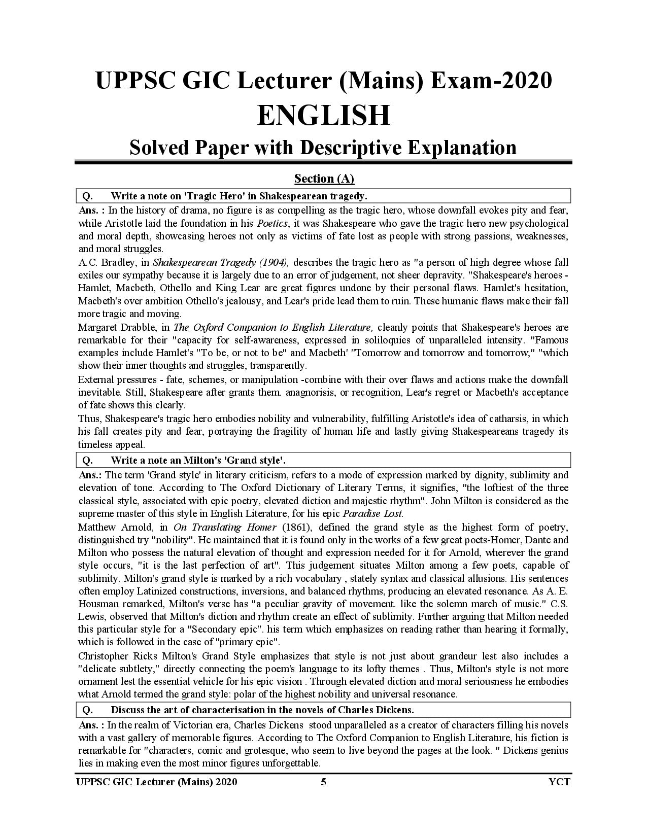 A chapter-wise descriptive solved papers book for LT Grade / GIC / GDC (Assistant Professor) English (Mains) – 2026 is a competitive exam preparation resource designed to help aspirants preparing for the English Descriptive/Mains paper of teacher recruitment exams like LT Grade, Government Inter College (GIC), Government Degree College (GDC) and Assistant Professor. These books compile past mains descriptive questions organized chapter by chapter by topic and provide solved/model answers, helping you understand how to write well-structured descriptive responses, practice writing essays, comprehensions, grammar tasks, and long-answer questions as required in the actual exam.