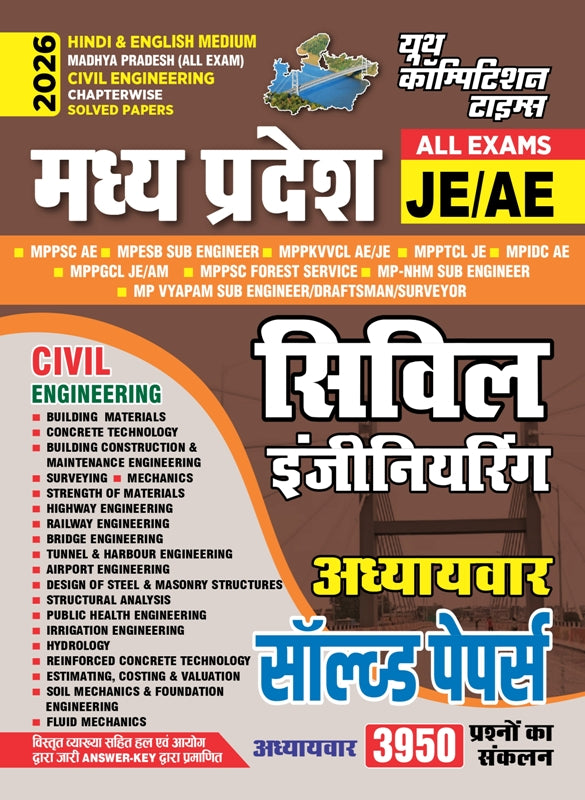A comprehensive preparation guide for Civil Engineering aspirants targeting various government exams in Madhya Pradesh. Published by Youth Competition Times (YCT), it features a collection of 3,950 chapter-wise solved papers updated for 2026.