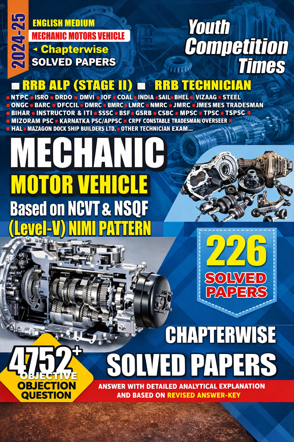 This book is a comprehensive resource for candidates preparing for various technician-level exams in India. Published by Youth Competition Times (YCT), it is specifically designed for the Mechanic Motor Vehicle trade, aligning with the latest vocational standards and exam patterns.