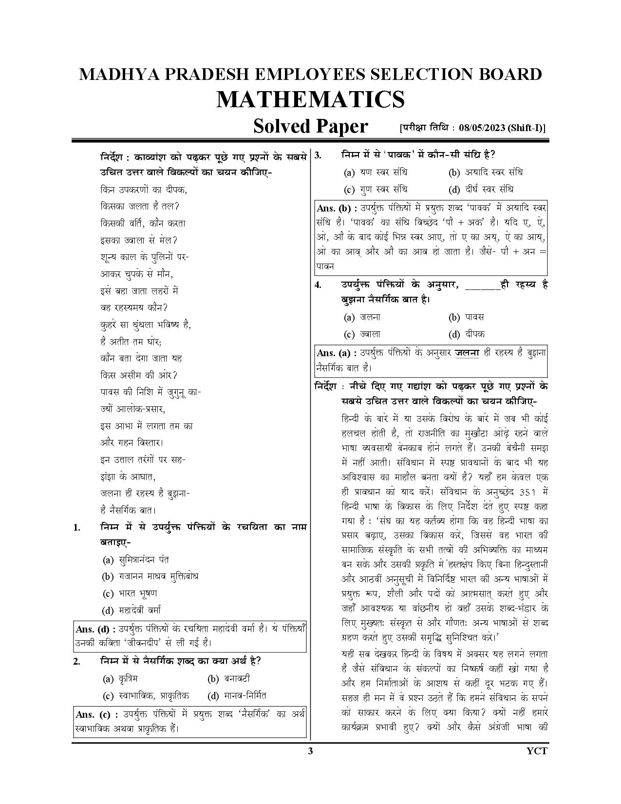 Covers the complete syllabus of Mathematics as prescribed by MPESB.