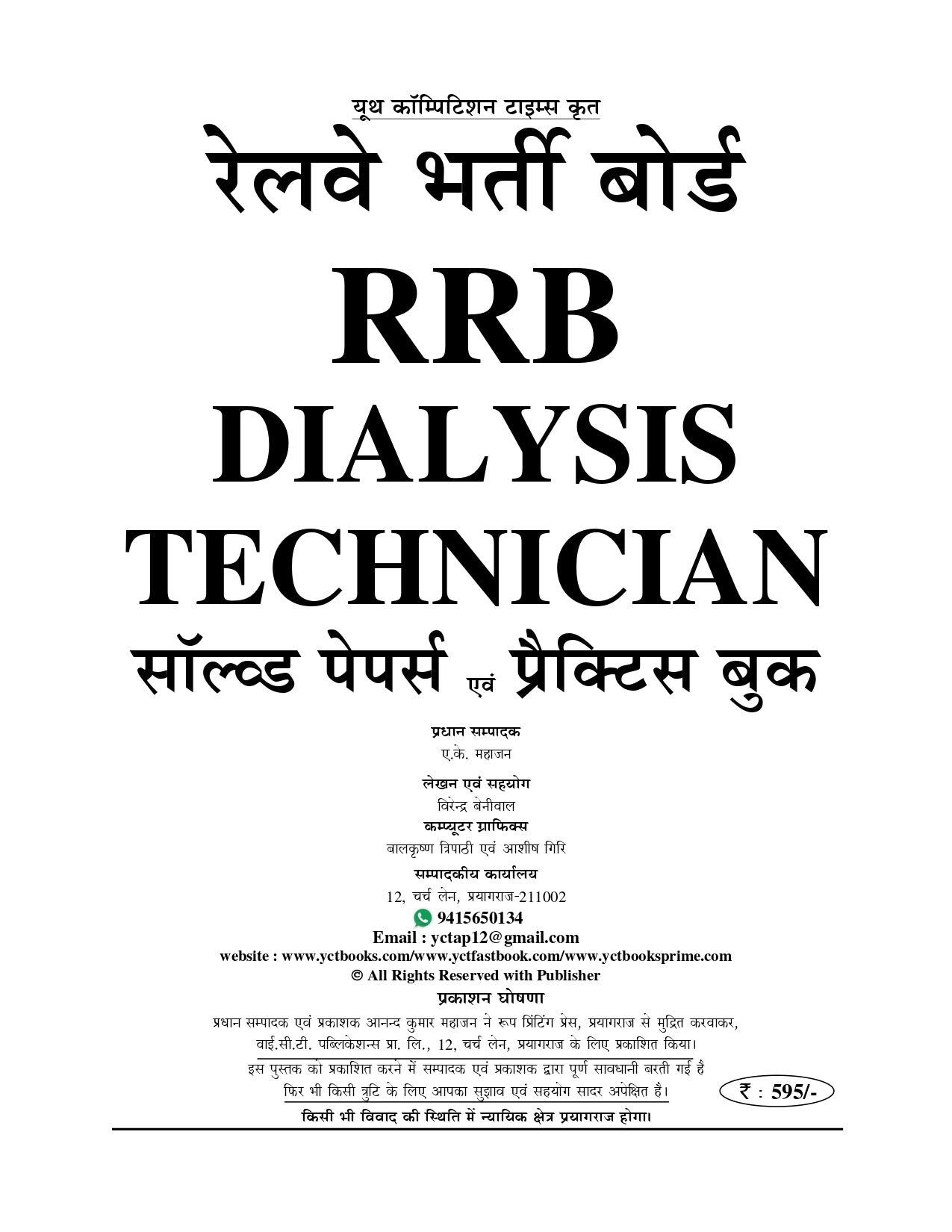 This study material, published by Youth Competition Times for the 2026 exam, is a dual-medium (Hindi & English Medium) resource specifically for the RRB Dialysis Technician recruitment.