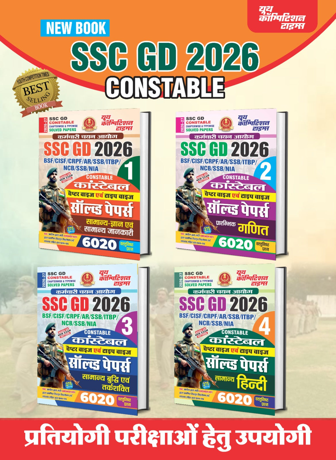 Youth Competition Times is designed specifically for candidates preparing for the SSC GD 2026 Constable recruitment exam. This four-volume combo covers all essential subjects required for BSF, CISF, CRPF, AR, SSB, ITBP, NCB, and NIA positions.