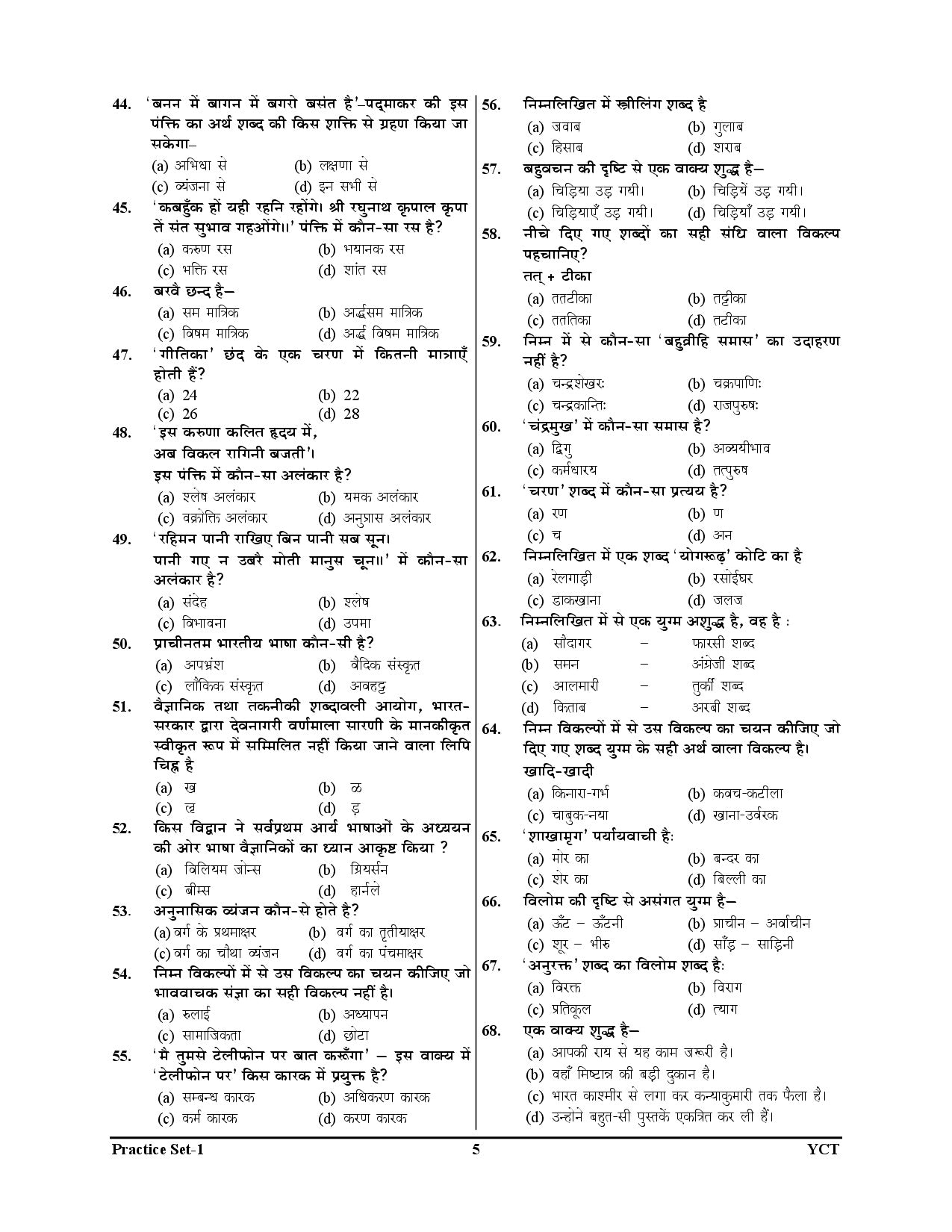Practice exam-oriented and important Hindi subject questions