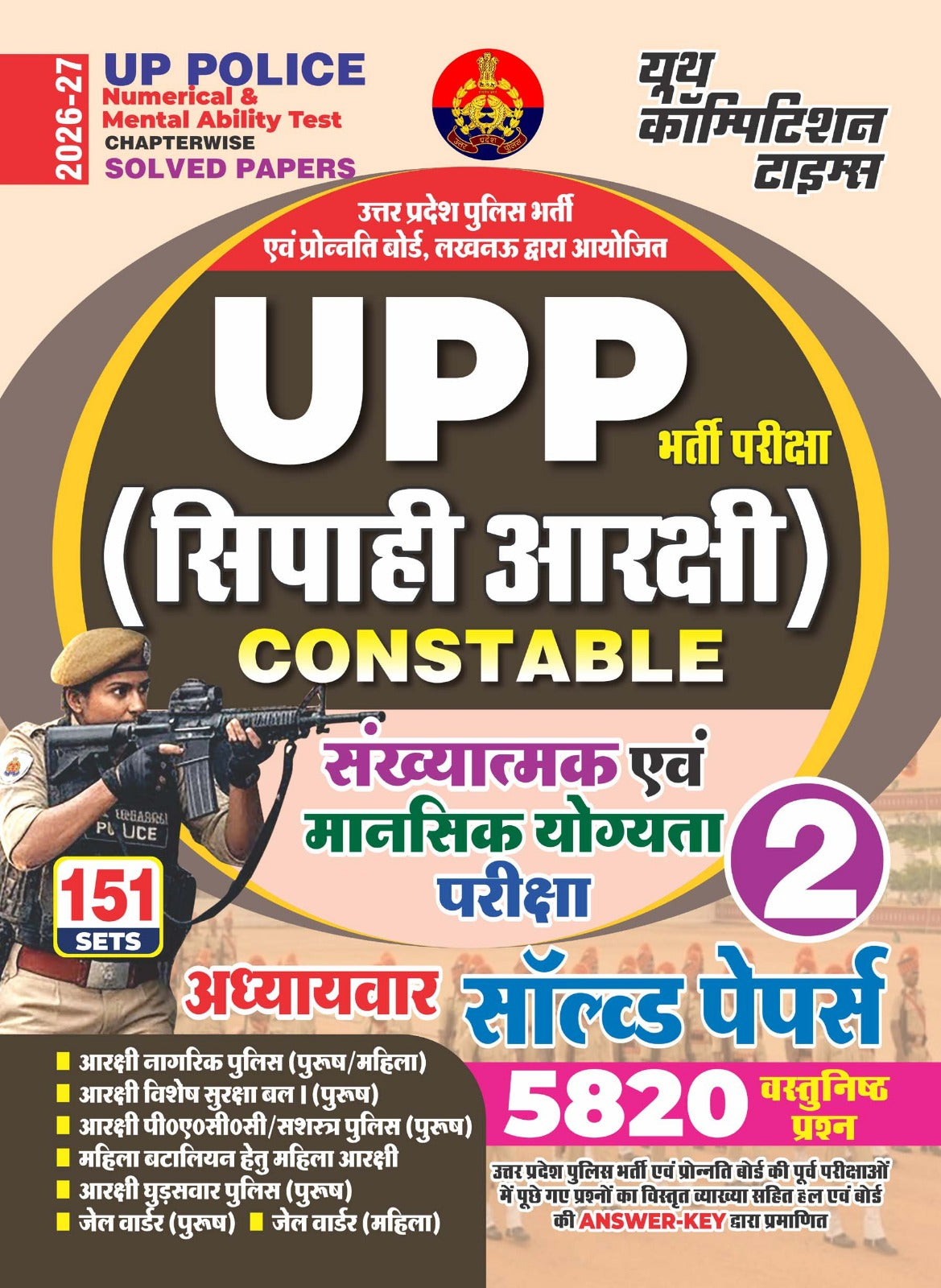 The book contains 151 fully solved previous year and practice sets, comprising 5820 objective-type questions, all prepared strictly according to the latest UP Police exam pattern and syllabus (2026-27). Each question is provided with clear and accurate solutions, helping candidates understand concepts, shortcuts, and problem-solving techniques effectively.