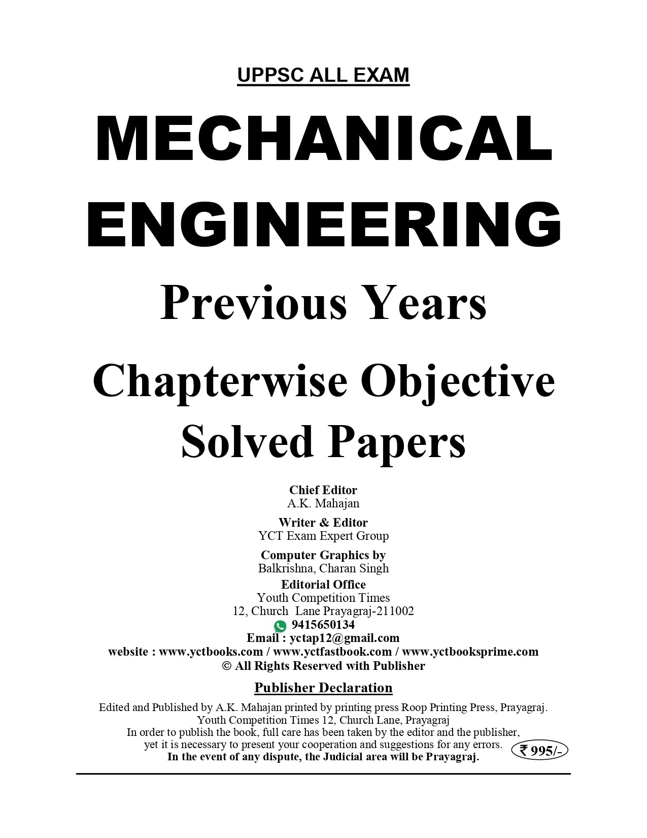 UPPSC AE Polytechnic Lecturer Mechanical Engineering Chapterwise Solved Papers 2025-26