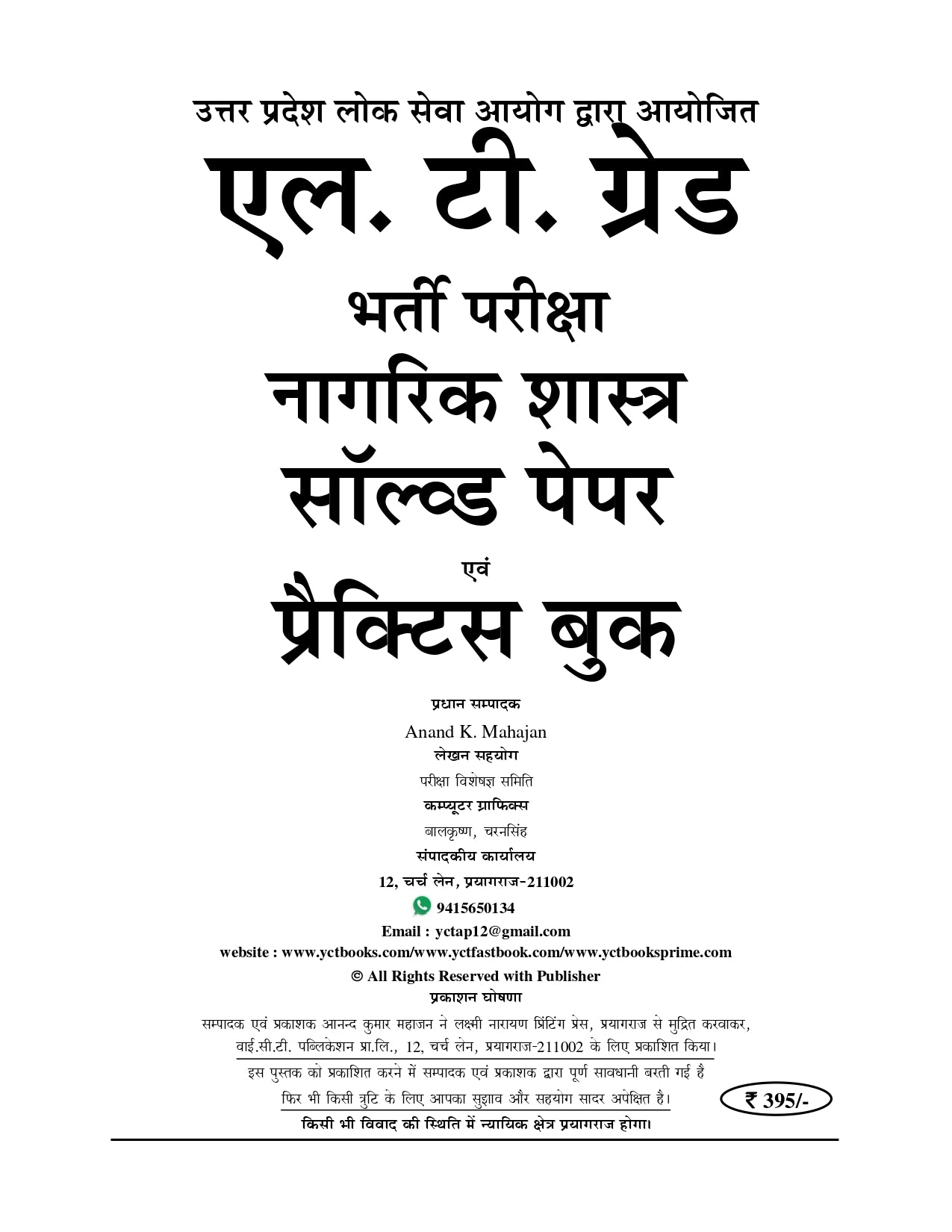 This is the UPPSC LT Grade Civics (नागरिक शास्त्र) Solved Paper & Practice Book, published by Youth Competition Times for the 2025-26 exam cycle.