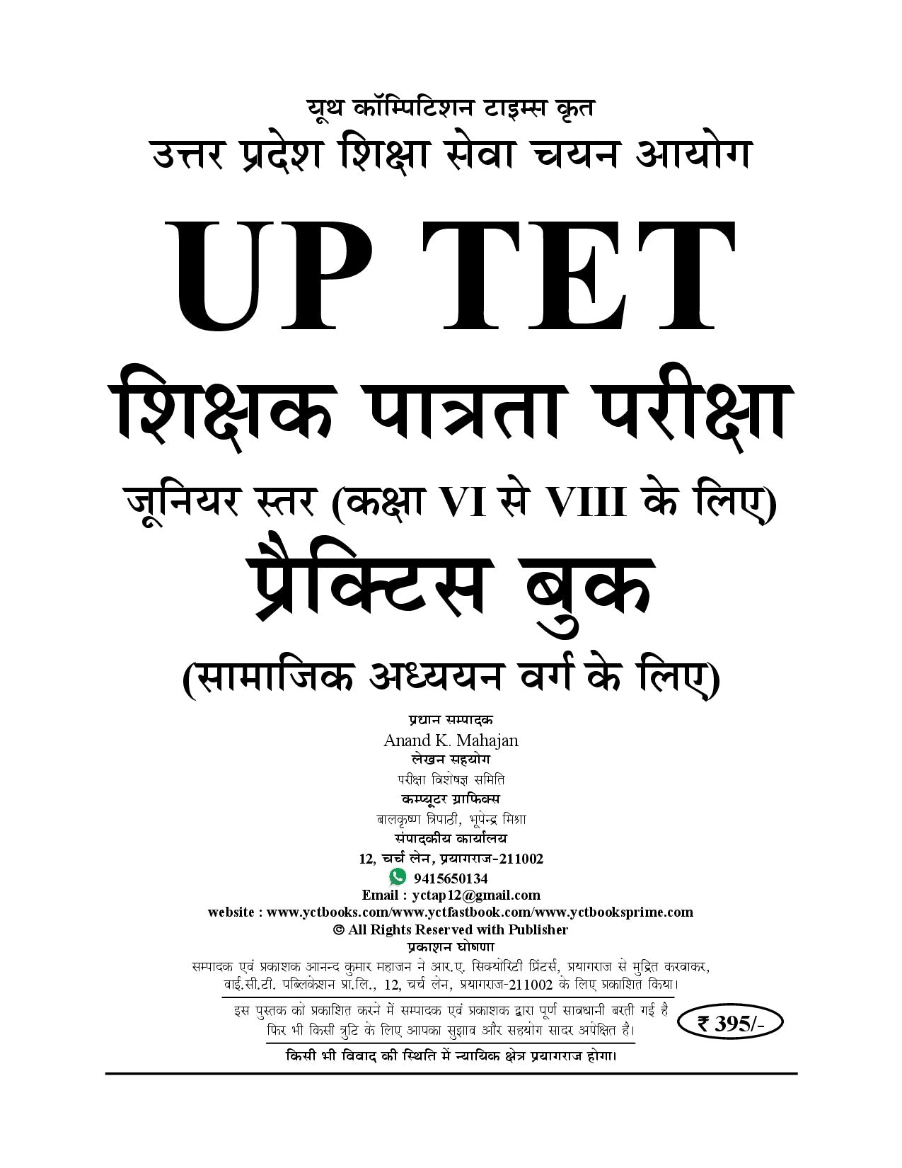 UPTET (For Class VI to VIII) Social Study Group (Junior Level) Practice Book - 2026-27 is a comprehensive practice resource designed for aspirants preparing for the Uttar Pradesh Teacher Eligibility Test at the Junior Level. This book covers the complete Social Study syllabus for Class VI to VIII, helping candidates strengthen their subject knowledge and exam readiness.